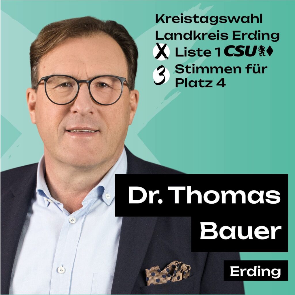 Dr. Thomas Bauer ist Fraktionssprecher der CSU im Kreistag Erding und Mitglied der Fraktionsvorstandschaft.
