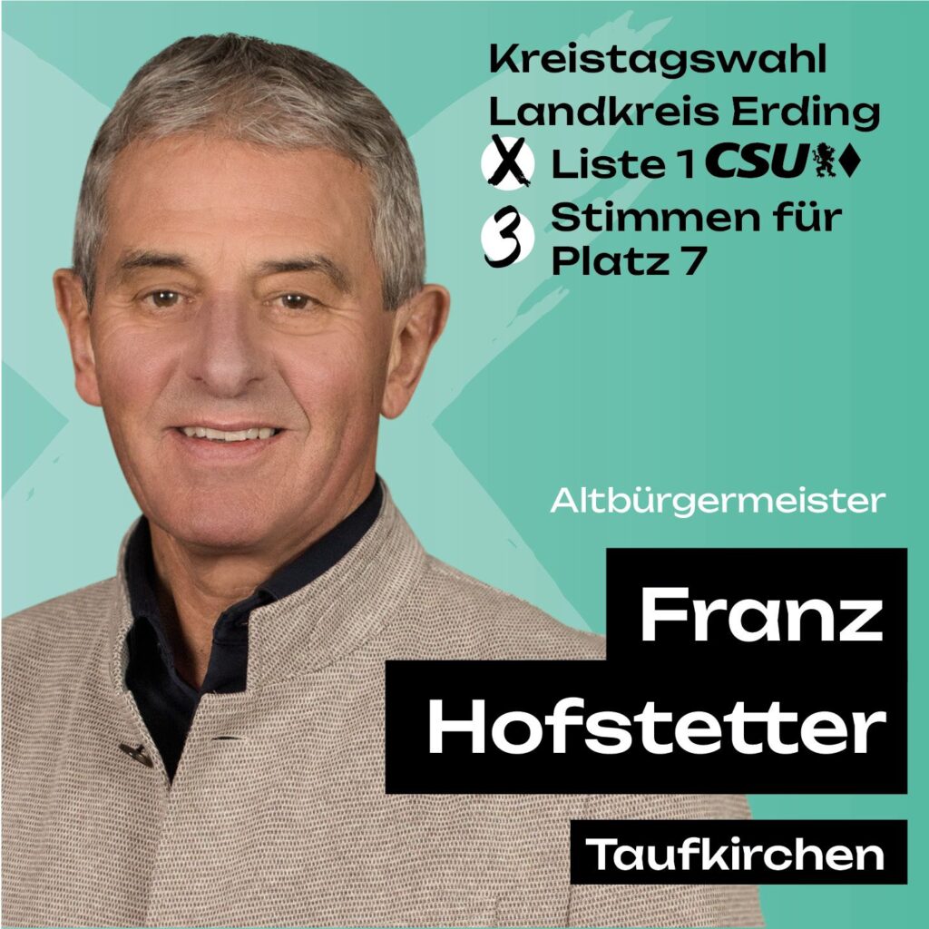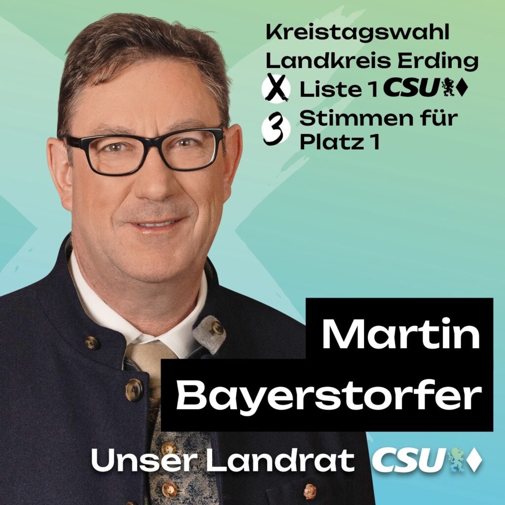 Der Landkreis Erding steht vor wichtigen Weichenstellungen: demografischer Wandel, medizinische Versorgung, bezahlbarer Wohnraum, Mobilität, Klima- und Umweltschutz, starke Kommunen sowie ein gutes Miteinander der Generationen. Um diese Herausforderungen verantwortungsvoll zu gestalten, braucht es Persönlichkeiten mit Erfahrung, Fachkompetenz, Bodenhaftung und echter Nähe zu den Menschen.